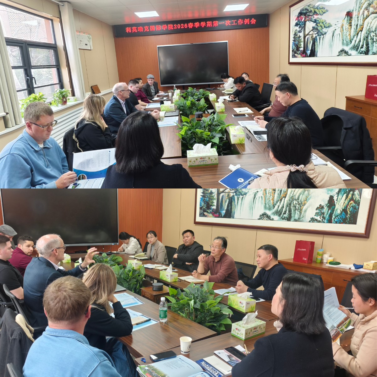 召开2026年春季学期工作例会。学院领导班子、外方院长及全体中外方教师齐聚一堂,共商教学发展大计,共谋国际办学新路径。